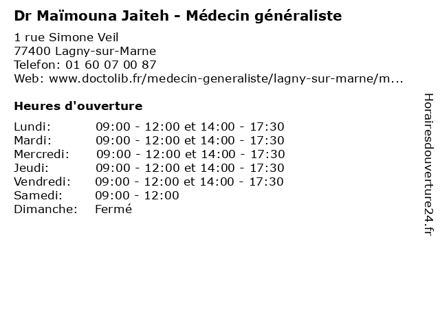 | Lundi | 09:00-12:00 et 14:00-17:30 |