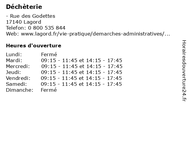 1 Déchèterie (Distance: 3,34 km) - Le payaud, 17138 Puilboreau déchèterie, gravats, huiles usées, la réception des déchets et écocentres, les appareils électroménagers, les déchets verts, papier et carton en quantité 2 Déchèterie (Distance: 19,55 km) - L'Aiguillon sur Mer, 85460 Aiguillon-sur-Mer déchèterie, gravats, huiles usées, la réception des déchets et écocentres, les appareils électroménagers, les déchets verts, papier et carton en quantité 3 Déchèterie (Été) (Distance: 1,85 km) n/c Rue du Four à Chaux, 17137 Nieul-Sur-Mer bennes, collecte, déchets, déchèterie, détritus, poubelles, été 4 Déchèterie (Hiver) (Distance: 1,85 km) - Rue du Four à Chaux, 17137 Nieul-sur-Mer bennes, collecte, déchets, déchèterie, détritus, hiver, poubelles 5 Déchèterie (Été) (Distance: 3,68 km) n/c Rue Debussy, 17000 La Rochelle bennes, collecte, déchets, déchèterie, détritus, poubelles, été 6 Déchèterie (Été) (Distance: 3,87 km) - Chemin de Dunkerque, 17000 La Rochelle bennes, collecte, déchets, déchèterie, détritus, poubelles, été |