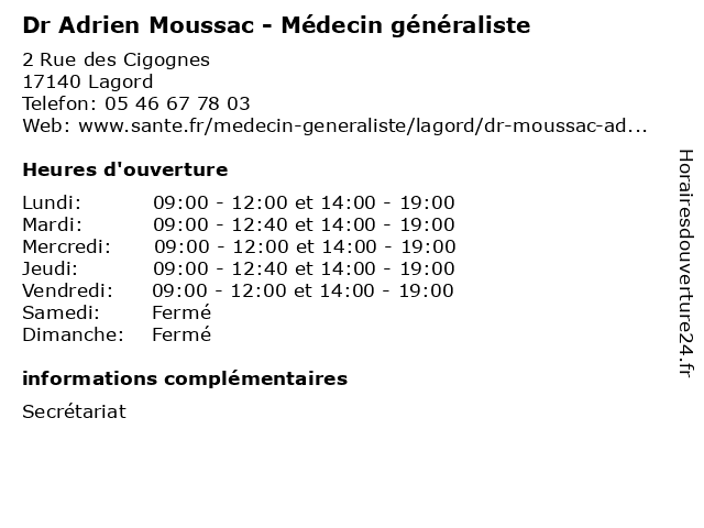 | Lundi | 09:00-12:00 et 14:00-19:00 |