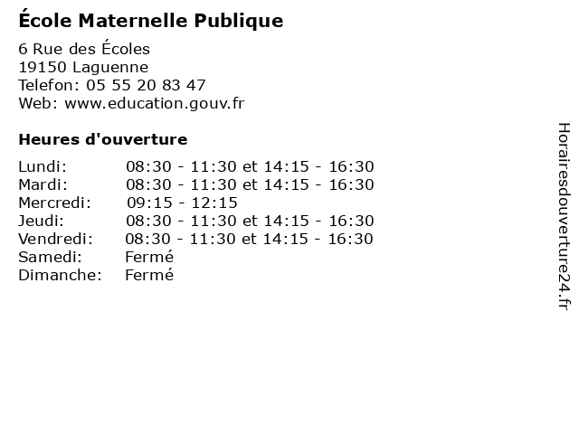 | Mardi | 08:30-11:30 et 14:15-16:30 |