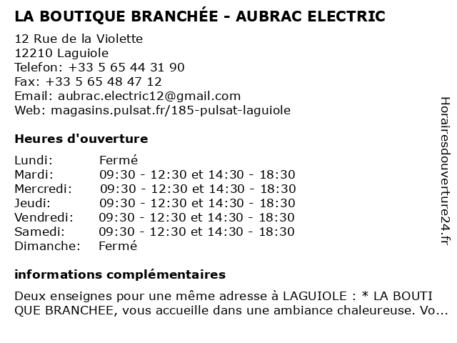 Termes de recherche pour LA BOUTIQUE BRANCHÉE - AUBRAC ELECTRIC:la, boutique, electric, aubrac, branchee |