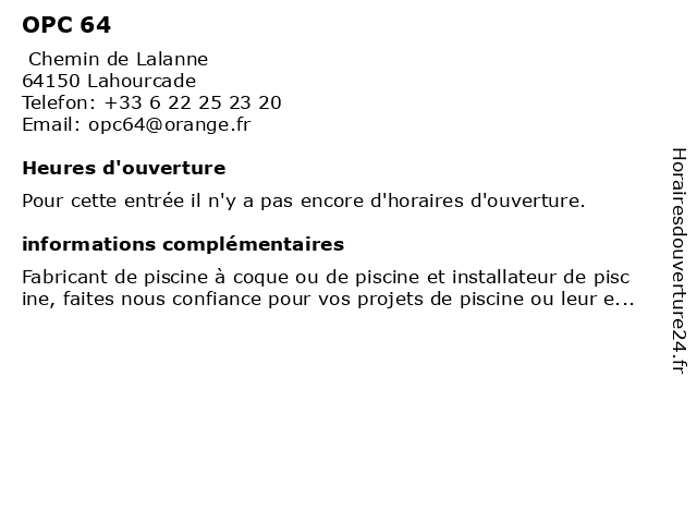 | Ajouter horaires d'ouverture | |