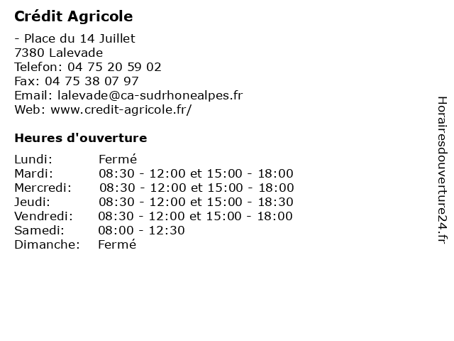 1 Crédit Agricole (Distance: 6,11 km) 18 Boulevard de Vernon, 07200 Aubenas agence, agricole, assurance, bancaire, banque, crédit 2 Crédit Agricole (Distance: 7,86 km) - Route de Montélimar, 07200 Aubenas agence, agricole, assurance, crédit, finances, immobilier, protection, prêt, santé, véhicule 3 Crédit Agricole (Distance: 7,94 km) 1 Route d'Alès, 07200 Saint-Etienne de Fontbellon agence, agricole, assurance, bancaire, banque, crédit 4 Crédit Agricole (Distance: 12,12 km) - Rue Camille Vielfaure, 07110 Largentiere agence, agricole, assurance, bancaire, banque, crédit 5 Crédit Agricole (Distance: 17,53 km) - Place de l'Esplanade, 07170 Villeneuve De Berg agence, agricole, assurance, bancaire, banque, crédit 6 Crédit Agricole Sud Rhône Alpes (Distance: 3,62 km) 12 Rue Auguste Clément, 07600 Vals Les Bains agence, agricole, alpes, assurance, bancaire, banque, crédit, rhône, sud |