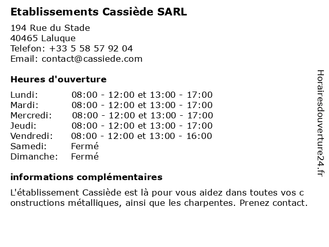 Termes de recherche pour Etablissements Cassiède SARL:sarl, etablissements, cassiede |