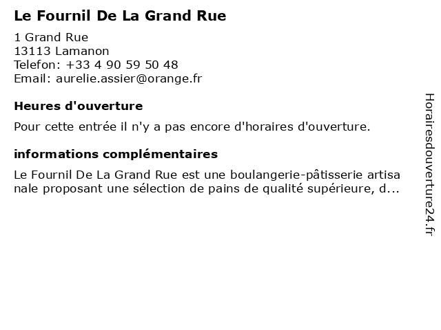 | Appeler Le Fournil De La Grand Rue | |