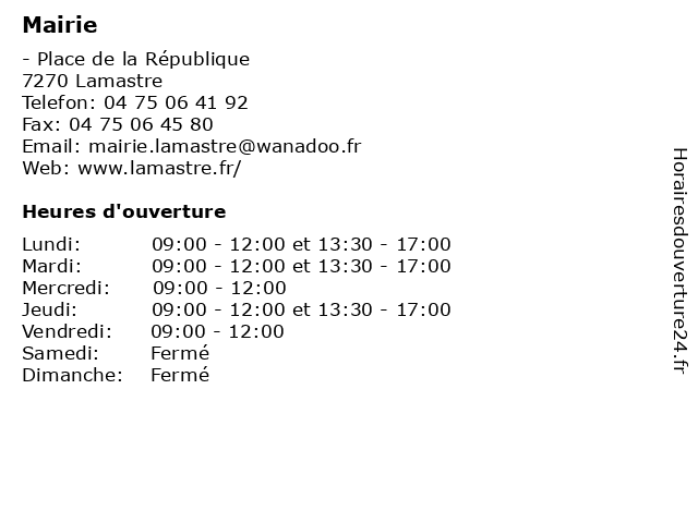 | Lundi | 09:00-12:00 et 13:30-17:00 |