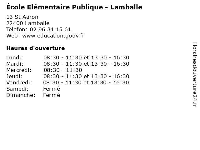 | Mardi | 08:30-11:30 et 13:30-16:30 |