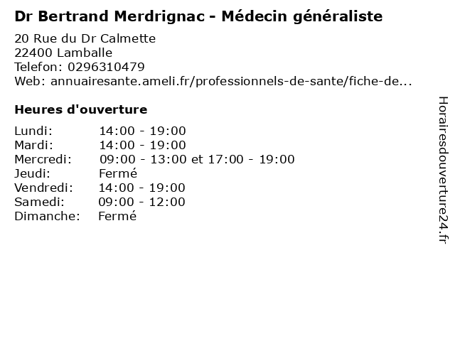 3 Dr Bertrand Catroux - Radiologue (Distance: 17,33 km) 10 rue Marcel Proust, 22000 Saint-Brieuc bertrand, catroux, consultation, docteur, dr, med, médecin, médecine, radiologue, traitement 4 Maître Bertrand Leroux - Avocat (Distance: 18,49 km) 17 allée Marie Le Vaillant, 22000 Saint-Brieuc avocat, avocate, avocats, bertrand, civils, droits, juridiques, leroux, maître 6 Le Lezard (Distance: 26,18 km) Boulevard De La Mer, 22380 Saint Cast Le Guildo bertrand, gerard, lezard, restaurants |
