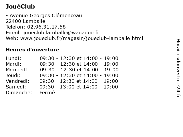 | Mardi | 09:30-12:30 et 14:00-19:00 |