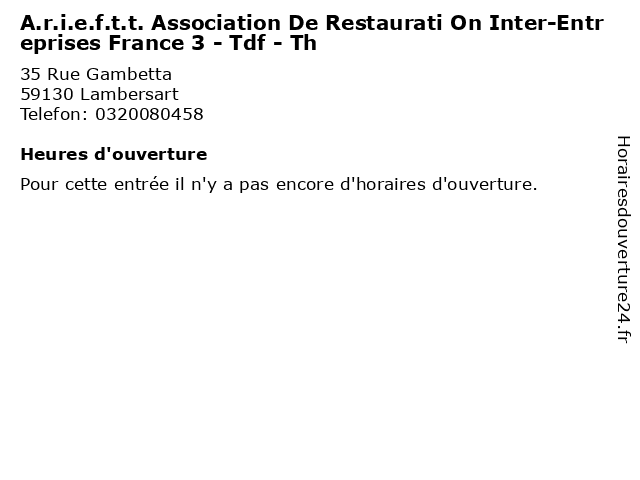 | Appeler A.r.i.e.f.t.t. Association De Restaurati On Inter-Entreprises France 3 - Tdf - Th | |