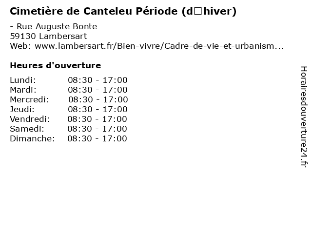 1 Cimetière de Canteleu Période (d’été) (Distance: 0,00 km) - Rue Auguste Bonte, 59130 Lambersart arbre, canteleu, cimetiere, cimetière, de, d’été, espace vert, forêt, funeraire, jardin, loisirs, nature, parc, prairie, période, square 2 Cimetière du Bourg Période (d’hiver) (Distance: 0,97 km) - Rue de Lompret, 59130 Lambersart arbre, bourg, cimetiere, cimetière, du, d’hiver, espace vert, forêt, funeraire, jardin, loisirs, nature, parc, prairie, période, square 3 Cimetière du Bourg Période (d’été) (Distance: 0,97 km) - Rue de Lompret, 59130 Lambersart arbre, bourg, cimetiere, cimetière, du, d’été, espace vert, forêt, funeraire, jardin, loisirs, nature, parc, prairie, période, square 4 Cimetière de Verlinghem Période (d’hiver) (Distance: 1,25 km) 39 Rue de Verlinghem, 59130 Lambersart arbre, cimetiere, cimetière, de, d’hiver, espace vert, forêt, funeraire, jardin, loisirs, nature, parc, prairie, période, square, verlinghem 5 Cimetière de Verlinghem Période (d’été) (Distance: 1,25 km) 39 Rue de Verlinghem, 59130 Lambersart arbre, cimetiere, cimetière, de, d’été, espace vert, forêt, funeraire, jardin, loisirs, nature, parc, prairie, période, square, verlinghem 6 Cimetière Paysager des Ormes Période (d’hiver) (Distance: 1,38 km) - Allée des Ormes, 59130 Lambersart arbre, cimetiere, cimetière, des, d’hiver, espace vert, forêt, funeraire, jardin, loisirs, nature, ormes, parc, paysager, prairie, période, square |