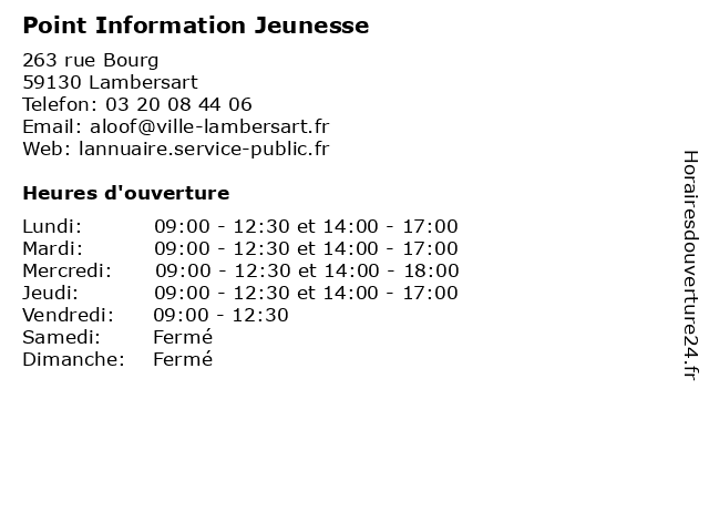| Mardi | 09:00-12:30 et 14:00-17:00 |