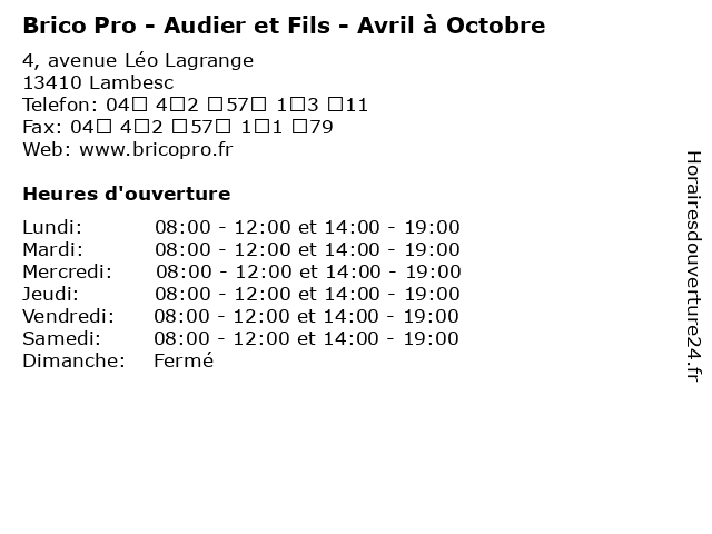 | Lundi | 08:00-12:00 et 14:00-19:00 |