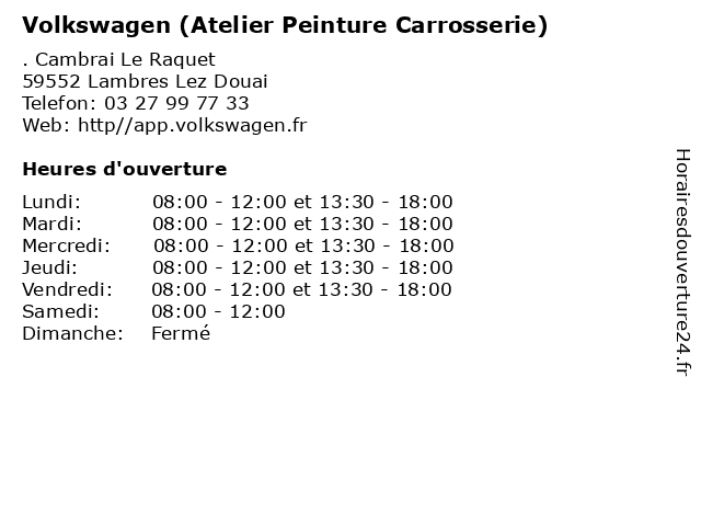 1 Volkswagen (Atelier Peinture Carrosserie) (Distance: 19,77 km) 21 Rue Pierre Beriot, 59220 Denain atelier, automobiles, carrosserie, concessionnaire, garage, motos, peinture, volkswagen 2 Volkswagen (Distance: 0,00 km) . Cambrai Le Raquet, 59552 Lambres Lez Douai automobiles, concessionnaire, garage, motos, volkswagen 3 Volkswagen (Activités Véhicules Neufs) (Distance: 0,00 km) . Cambrai Le Raquet, 59552 Lambres Lez Douai activités, automobiles, concessionnaire, garage, motos, neufs, volkswagen, véhicules 4 Volkswagen (Activités Véhicules d’Occasion) (Distance: 0,00 km) . Cambrai Le Raquet, 59552 Lambres Lez Douai activités, automobiles, concessionnaire, d’occasion, garage, motos, volkswagen, véhicules 5 Volkswagen (Atelier Mécanique) (Distance: 0,00 km) . Cambrai Le Raquet, 59552 Lambres Lez Douai atelier, automobiles, concessionnaire, garage, motos, mécanique, volkswagen 6 Volkswagen ( Express avec forfait) (Distance: 0,00 km) . Cambrai Le Raquet, 59552 Lambres Lez Douai automobiles, avec, concessionnaire, express, forfait, garage, motos, volkswagen |