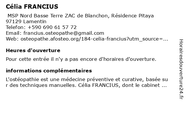 1 Célia Francius - Ostéopathe (Distance: 10,05 km) 97110 Residence Bergevin, 97110 Pointe-à-Pitre célia, francius, ostéo, ostéopathe, ostéopathes, soins |