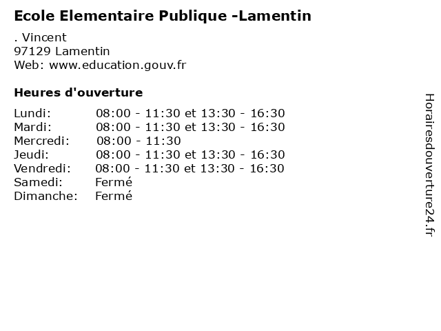 | Mardi | 08:00-11:30 et 13:30-16:30 |