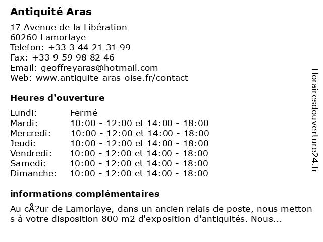 | Samedi | 10:00-12:00 et 14:00-18:00 |