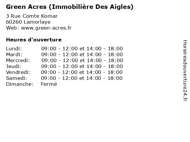| Lundi | 09:00-12:00 et 14:00-18:00 |