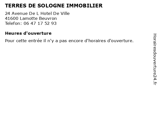 | Appeler TERRES DE SOLOGNE IMMOBILIER | |