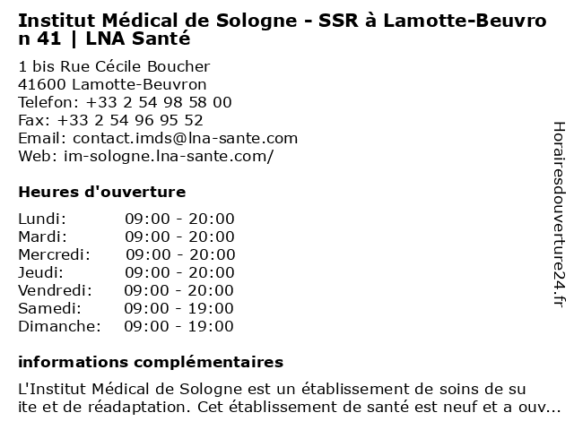 Termes de recherche pour Institut Médical de Sologne - SSR à Lamotte-Beuvron 41 | LNA Santé:de, institut, santé, sologne, medical, beuvron, ssr, lamotte, 41, lna |