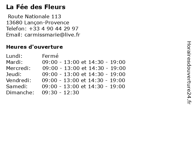 | Mardi | 09:00-13:00 et 14:30-19:00 |
