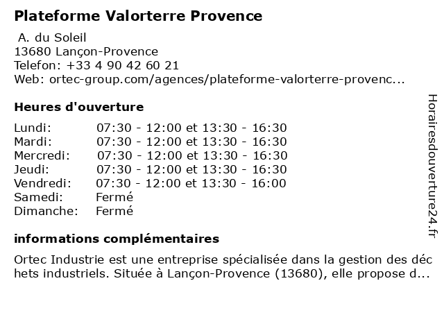 Lundi | 07:30-12:00 et 13:30-16:30 |