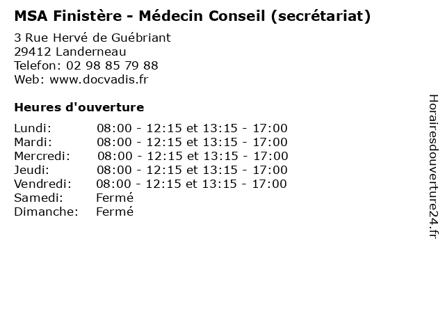 Termes de recherche pour MSA Finistère - Médecin Conseil (secrétariat):santé, conseil, finistère, secretariat, docteur, médecin, consultation, msa |