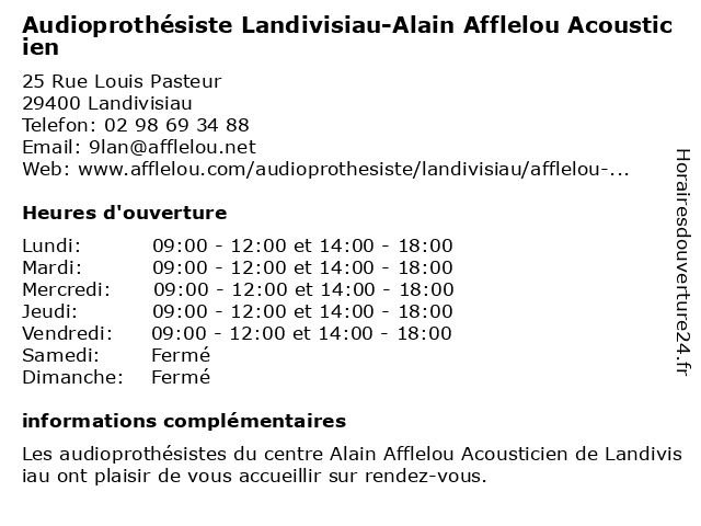 Termes de recherche pour Audioprothésiste Landivisiau-Alain Afflelou Acousticien:landivisiau, alain, afflelou, acousticien, audioprothésiste, audiologie, clinique médicale |