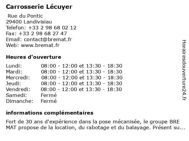 | Lundi | 08:00-12:00 et 13:30-18:30 |