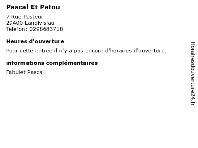 1 Buffet Pascal EURL (Distance: 0,87 km) 29 Rue Georges Brassens, 29400 Landivisiau buffet, eurl, pascal 2 BLAISE PASCAL (Distance: 10,34 km) Lannivinon Vihan, 29410 Saint-Thégonnec Loc-Eguiner blaise, pascal 5 6 Dr Pascal Le Du - Chirurgien-dentiste (Distance: 18,96 km) 15 Rue de Kersaint Gilly, 29672 Morlaix chirurgien, consultation, dentiste, docteur, dr, du, le, med, médecin, pascal, traitement |