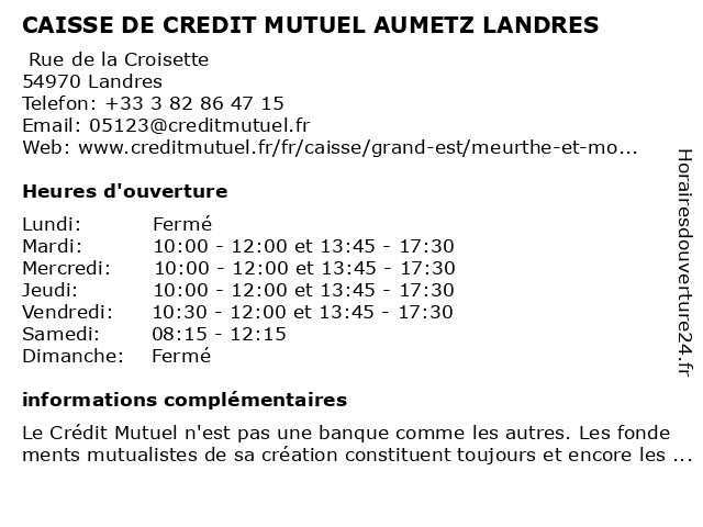 Termes de recherche pour CAISSE DE CREDIT MUTUEL AUMETZ LANDRES:de, crédit, mutuel, caisse, landres, aumetz |