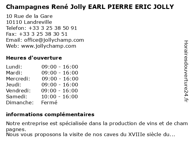 1 Champagne Charles Jolly (Distance: 0,55 km) 4 Rue de ville sur Arce, 10110 Landreville brut, champagne, charles, doux, jolly, magnum, vente, vins 4 CHAMPAGNE ALINE JUVENELLE EARL (Distance: 7,15 km) 40 Grande Rue, 10110 Polisy aline, champagne, earl, juvenelle 6 Lamoureux-vincent Jean-michel EARL (Distance: 11,50 km) 2 Rue du Sénateur Lesache, 10340 Les Riceys earl, jean, lamoureux, michel, vincent |