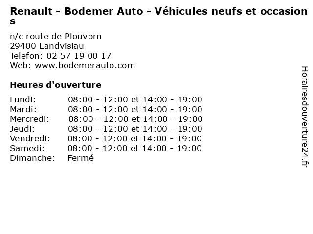 | Lundi | 08:00-12:00 et 14:00-19:00 |