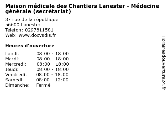 | Lundi | 08:00-18:00 |