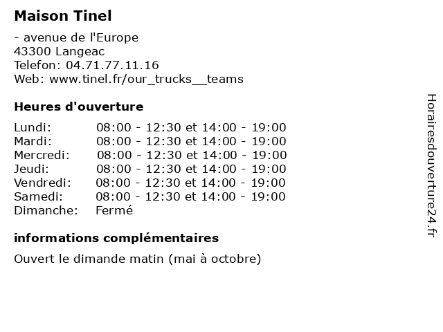 | Samedi | 08:00-12:30 et 14:00-19:00 |