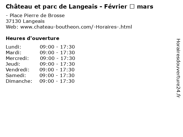 | Dimanche | 09:00-17:30 |
