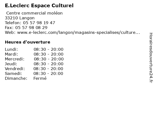 Termes de recherche pour E.Leclerc Espace Culturel:espace, e.leclerc, culturel, librairies, magasin de musique, magasin de jeux vidéo, fournisseur de matériel audiovisuel, matériel de photographie, matériel vidéo, services et matériel vidéo |