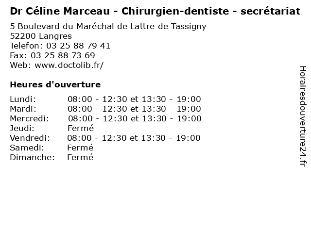 | Mercredi | 08:00-12:30 et 13:30-19:00 |