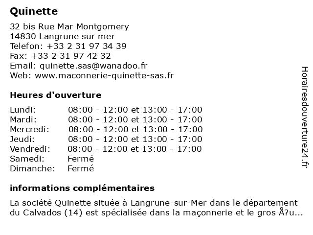 La société Quinette située à Langrune-sur-Mer dans le département du Calvados (14) est spécialisée dans la maçonnerie et le gros Å?uvre de tous les bâtiments publics ou privés.