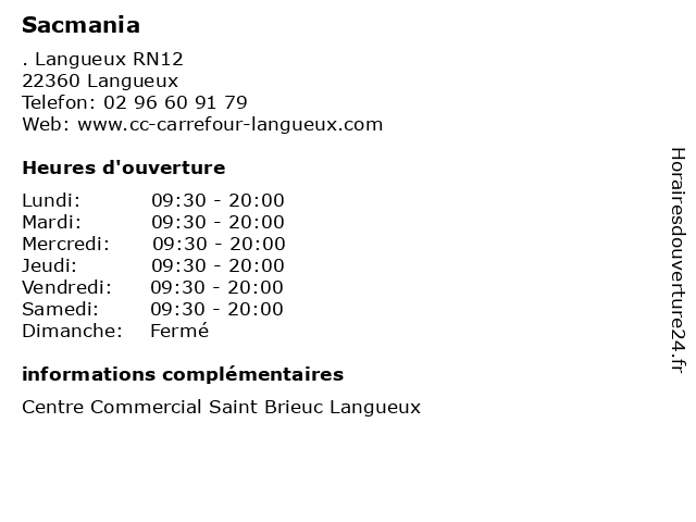 | Samedi | 09:30-20:00 |