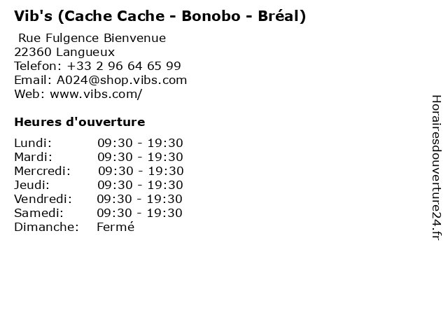 | Vendredi | 09:30-19:30 |