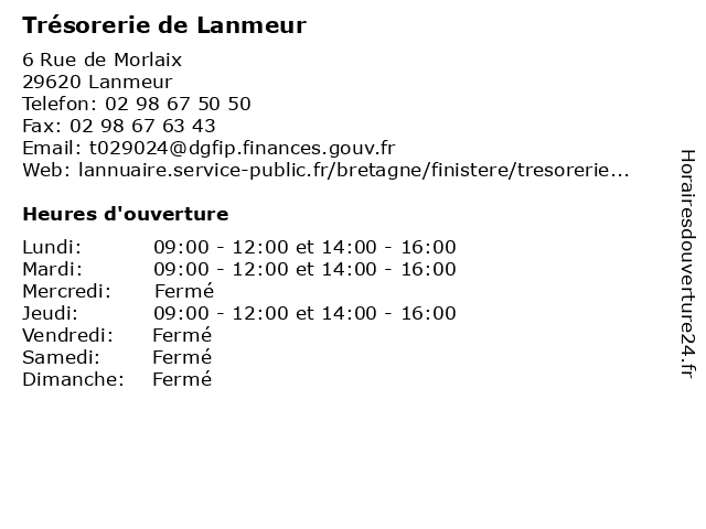 Termes de recherche pour Trésorerie de Lanmeur:de, administration, service, services publics, trésorerie, lanmeur |