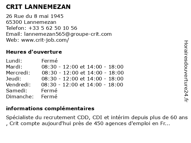 1 CRIT TARBES (Distance: 27,14 km)38 Rue du 4 Septembre, 65000 Tarbes crit, tarbes