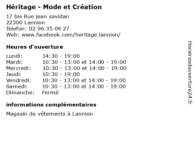 | Mardi | 10:30-13:00 et 14:00-19:00 |