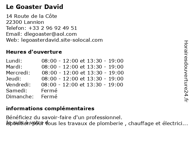 | Lundi | 08:00-12:00 et 13:30-19:00 |