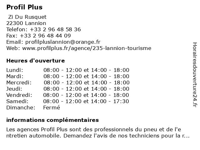 | Samedi | 08:00-12:00 et 14:00-17:30 |