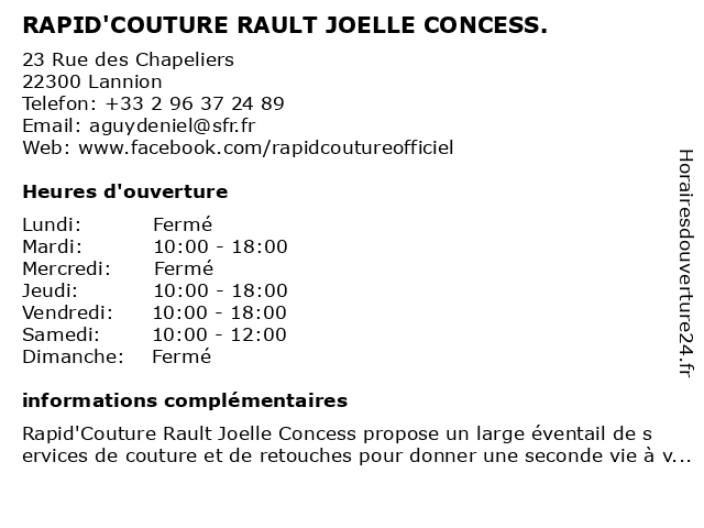 Termes de recherche pour RAPID'COUTURE RAULT JOELLE CONCESS.:rapid'couture, joelle, rault, concess. |