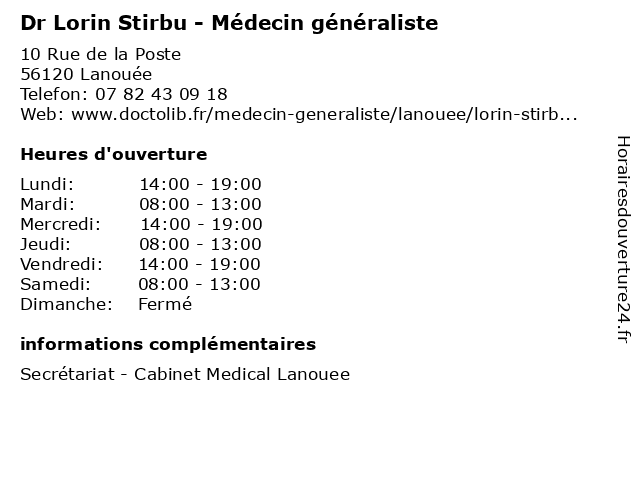 | Samedi | 08:00-13:00 |