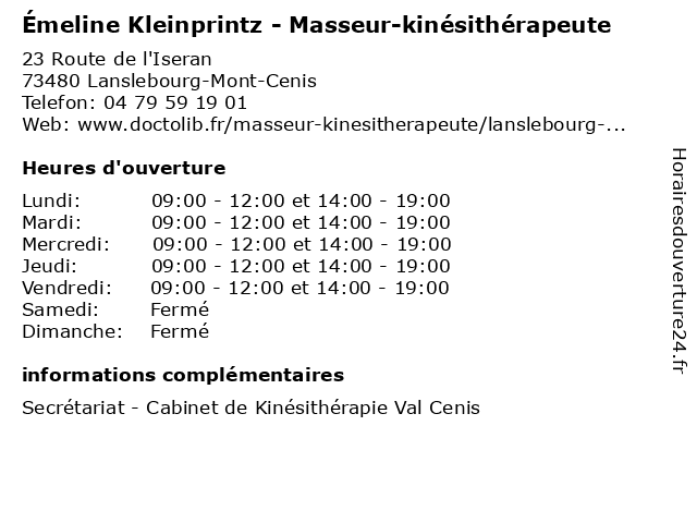 | Lundi | 09:00-12:00 et 14:00-19:00 |