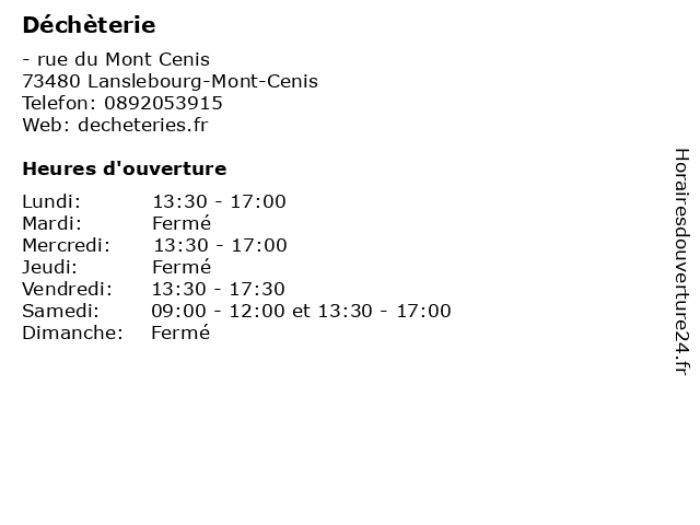 | Samedi | 09:00-12:00 et 13:30-17:00 |